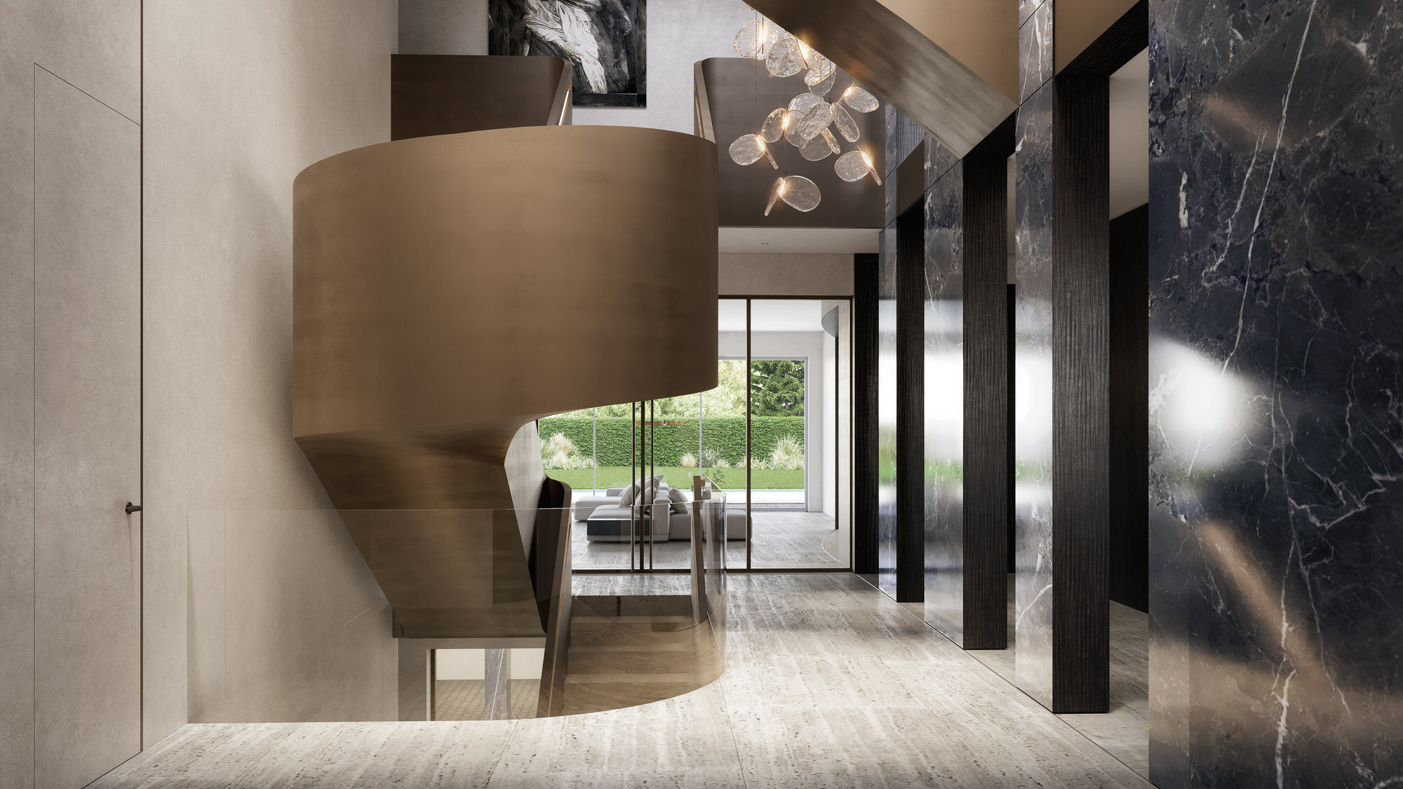 When families enter a new phase of life, renovation may no longer serve the purpose. In Munich, a new dimension of spatial excellence is being created on approximately 600m² of living space within this existing villa property. The inside-out approach is being deployed to transform winding structures into flowing levels with optimised access to the garden and pool. The new staircase leads from the underground car park to the attic, forming an architectural backbone that harmoniously connects the living areas on all floors.